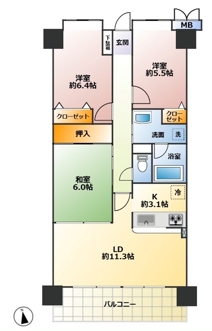東南角地のため陽当良好!全居室洋室のため使い勝手が良くウォークインクローゼット付!
